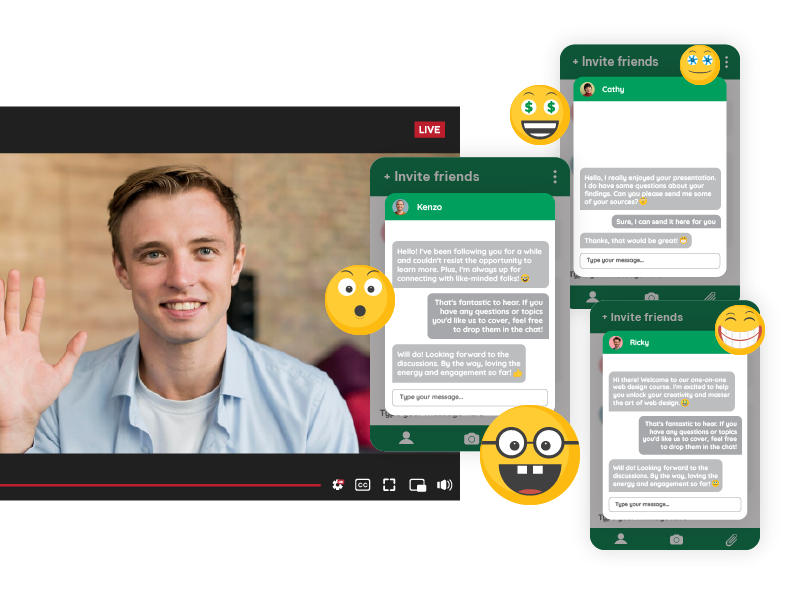 At RumbleTalk, you can use the group chat to connect with your audience using emojis. There are various types of emojis you can choose from, e.g., the basic to the more modern ones.