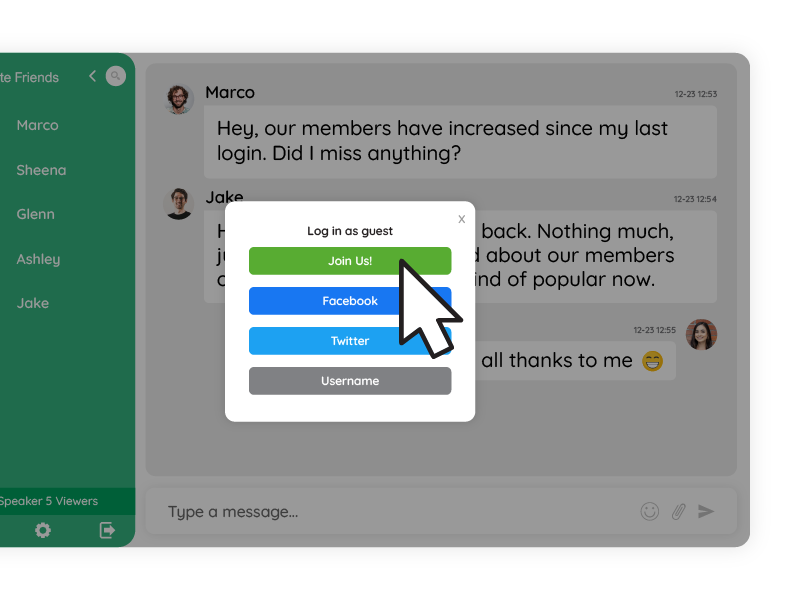 Another example would be letting users register before they can enter the chat room. This will help you collect data from your users like their name and profile picture. You can then use this data to cater their needs.