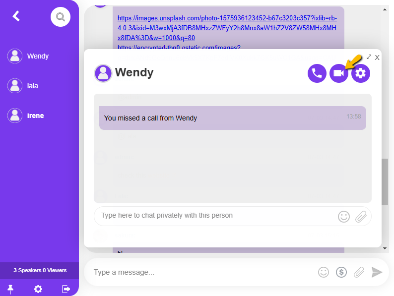- Click the user you want to call. Then, click the call button.