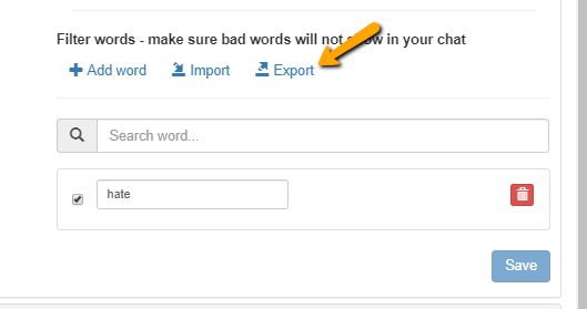- Export – Here, you will see the words you’ve currently blocked.