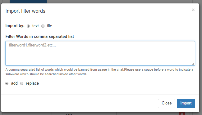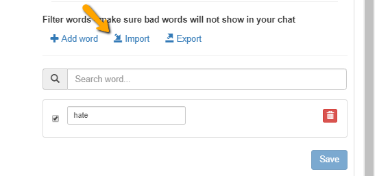 - Import – You can import a .txt or file with a list of your wanted blocked words. Also, you can use the previous technique in here by adding filter words in a comma-separated list.