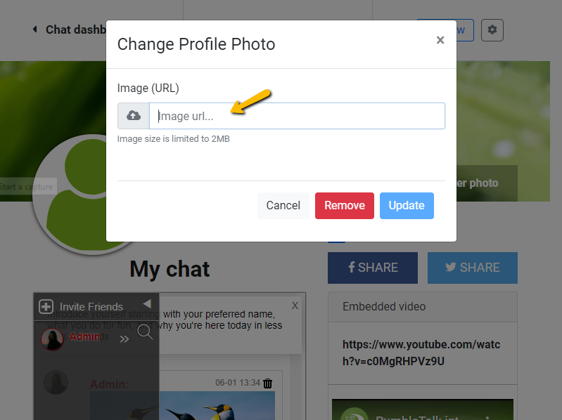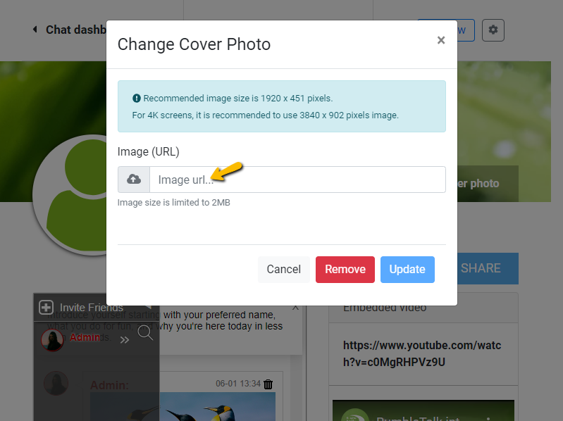 A RumbleTalk page includes a chat and a quick design for the page. You can change your profile and header photos on RumbleTalk Pages. To do so, follow these steps.