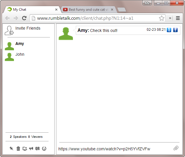 If you’ve pasted the address for a YouTube or Vimeo video, it will automatically be embedded into the chat.