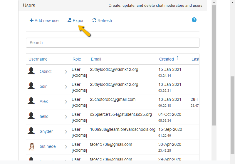 < Back You are here: KB Home 2. The Basics How to export the users list? Print How to export the users list? UpdatedOctober 23, 2024 To export the users list, go to the Users tab on your admin panel. In there, you will find your users list. Click Export to export a copy of your users list. Use this short video as a guide. Watch this video on YouTube