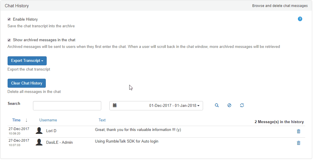 Log into your account and go to your chat room settings. Then, go to the Archive section.