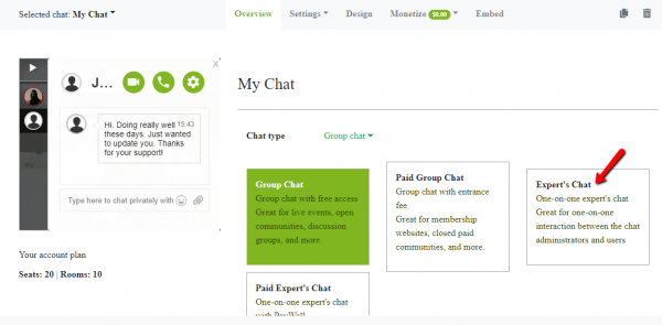 Expert’s chat is a one-on-one chat via private messages. Instead of using the typical group chat type, expert’s chat lets a professional lend his aid to clients, customers, or his followers.