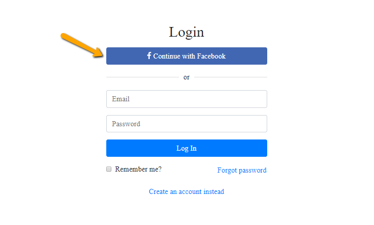 - In the log-in page, click “Continue with Facebook.”