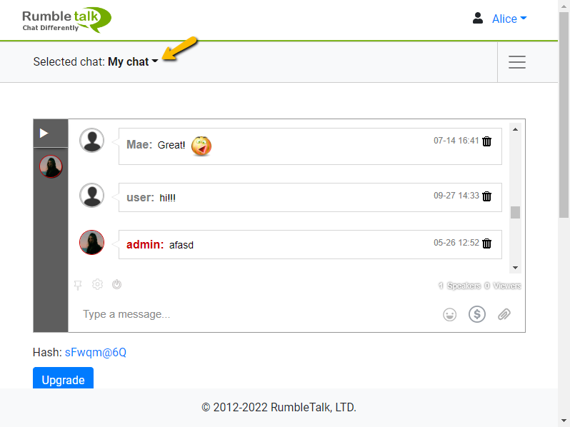 - Click it to delete a chat room.