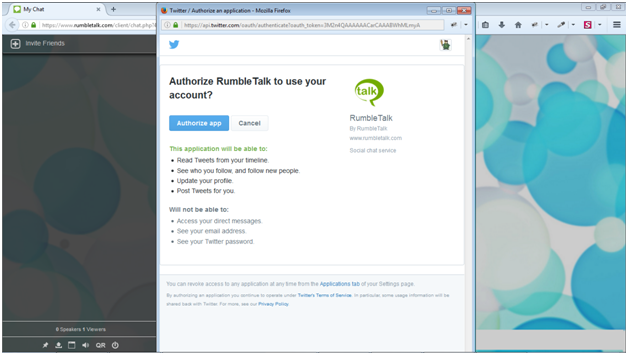 Once you enter your case sensitive chat room admin username and password, it will ask you to “authorize app.”