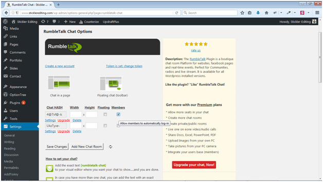 For ready made plugins. Like WordPress, once you go to the RumbleTalk Chat plugin settings. Choose your chat room’s name, ensure the box underneath “Members” is selected.
