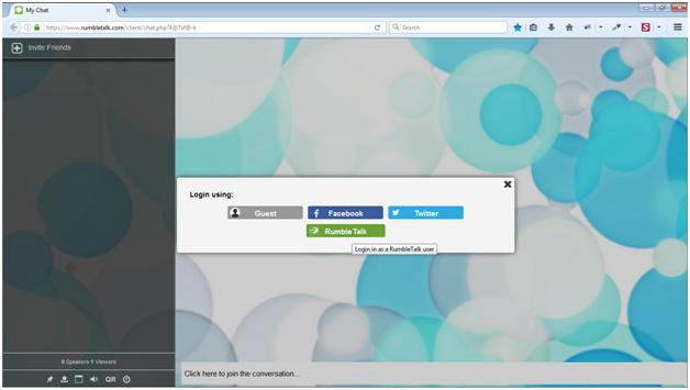 This will open the four different options to login (as a chat room admin you can decide which login option you would like to have).