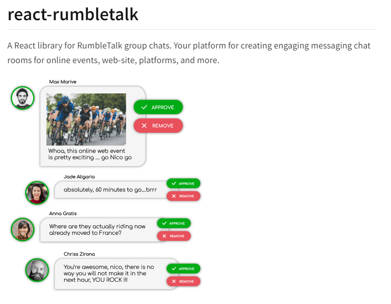 Add a chat to your REACT website using NPM https://www.npmjs.com/package/react-rumbletalk