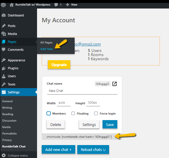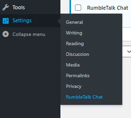 Once you activate your RumbleTalk WordPress plugin, you will now be able to see RumbleTalk Chat under your WordPress settings.