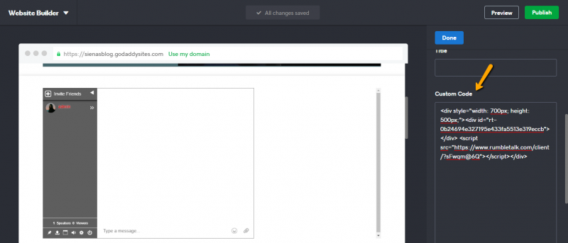 Embedding RumbleTalk group chat in GoDaddy