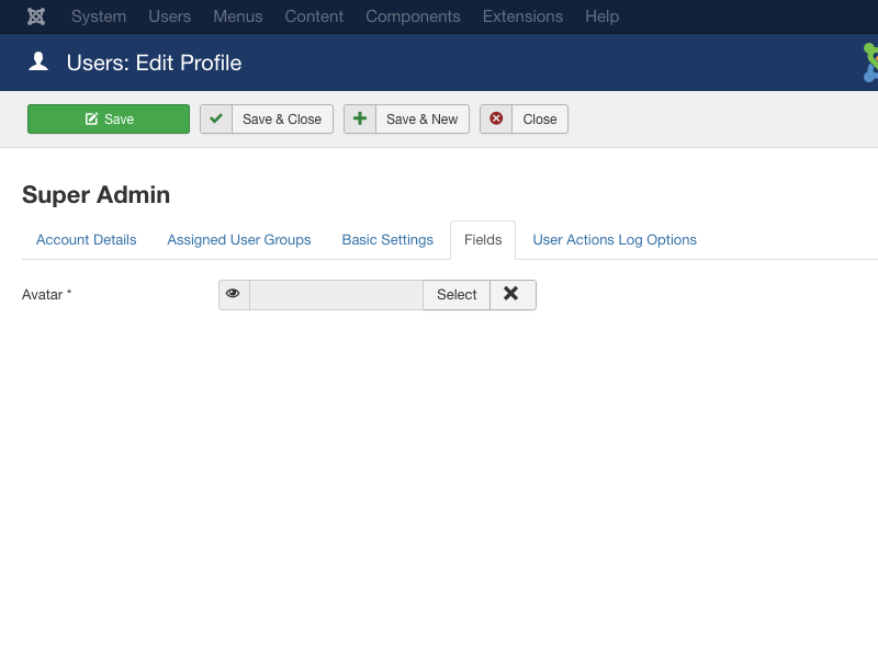 NOTE: Joomla’s administration panel doesn’t offer a field to put an image as a profile picture (avatar). The Joomla website owner is the one who needs to put this field.