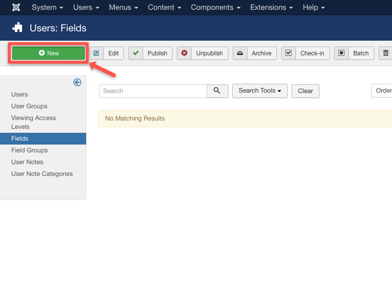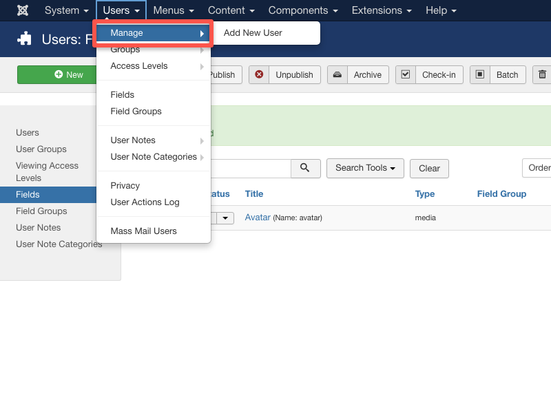 - Go to Fields under the Users tab.