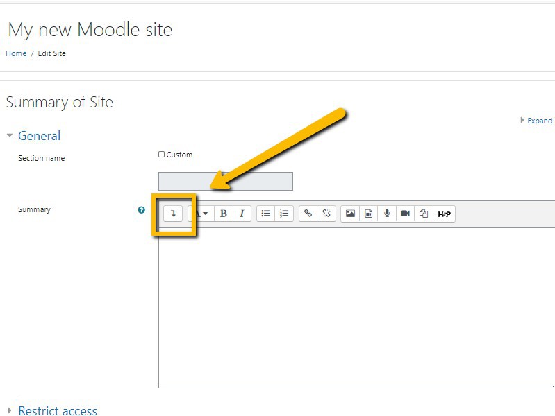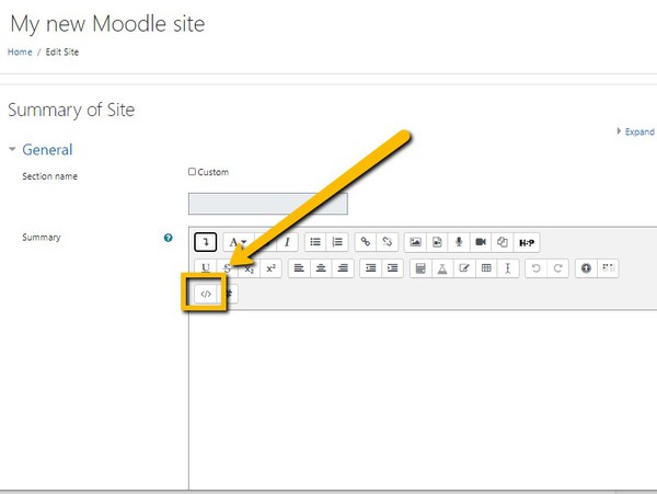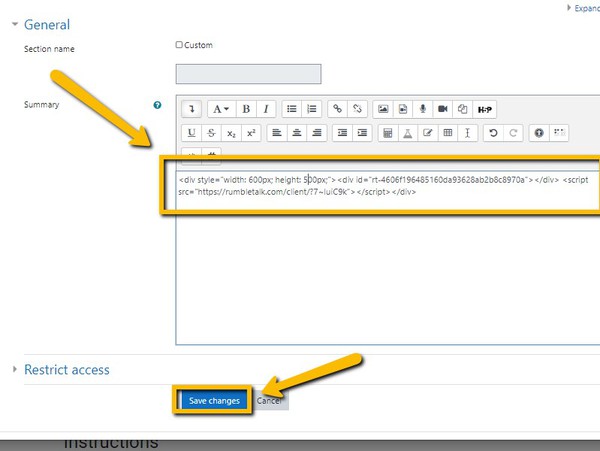 - Second, click the HTML button so that the Moodle website would read your RumbleTalk embed code as HTML.