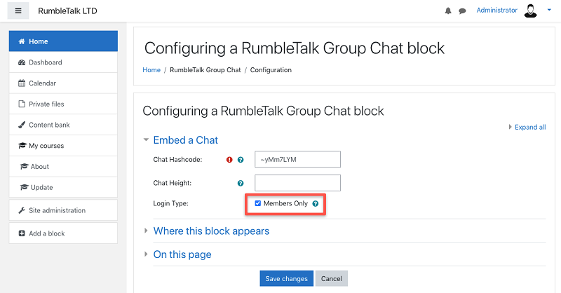 How to make a “members only” chat in a Moodle page?