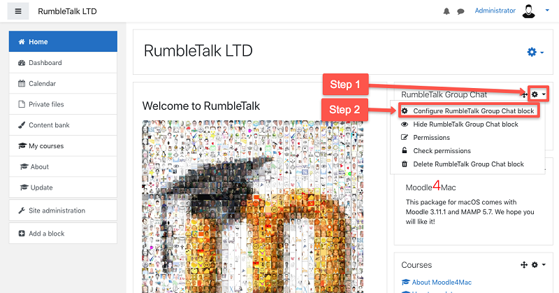 Then, click the Configure RumbleTalk Group Chat block to proceed with the plugin settings page.