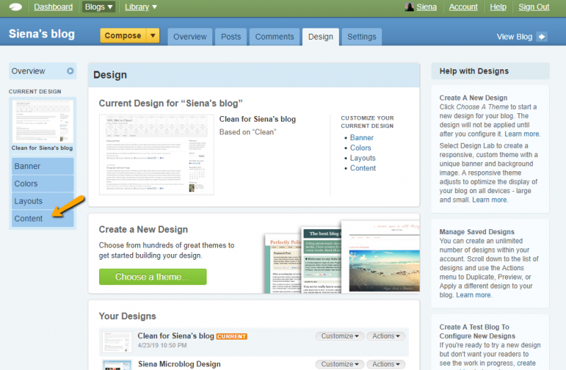 - Log-in to TypePad and choose your current blog.