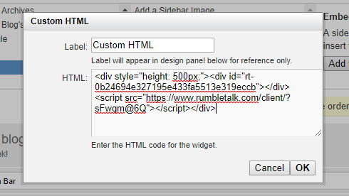 Embedding RumbleTalk group chat in TypePad