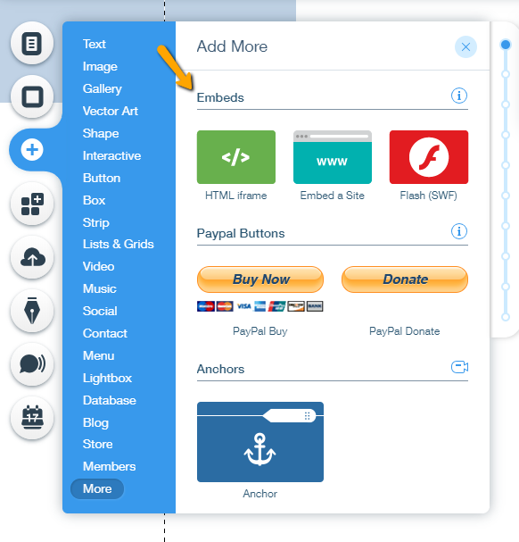 - Click on More. Choose Embeds and click HTML iframe.