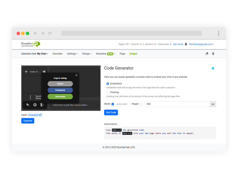 If the goal is to add real-time interaction directly to a website, a dedicated website chat room is usually the better fit, like Rumbletalk.