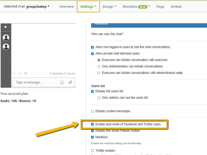 - Third, scroll down and look for the check the Enable auto-invite of Facebook and Twitter users box.