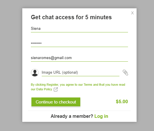 When Paid Access is set, a user will need to pay in order to login to the chat. Payment is either a monthly or yearly billing cycle (chat owner choice).