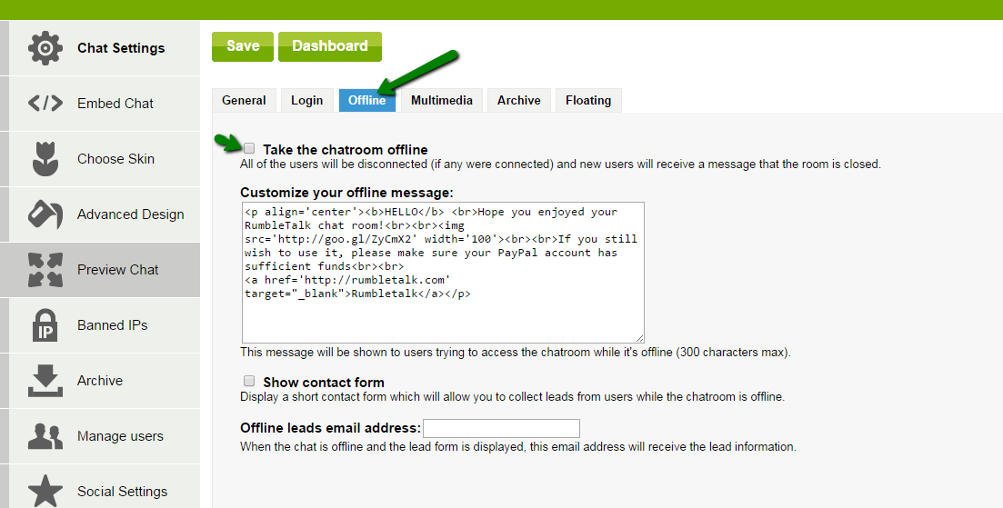 RumbleTalk hidden trick to disconnect all chat users with a click