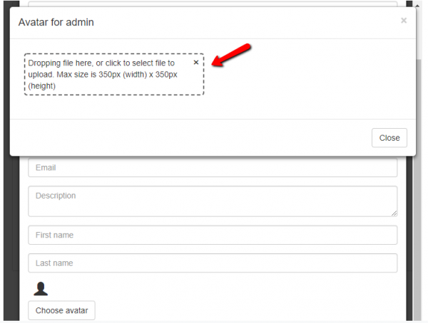- Click the box to change the user’s image. Make sure that the photo is 350px by 350px or it won’t be accepted. Then, close the window.