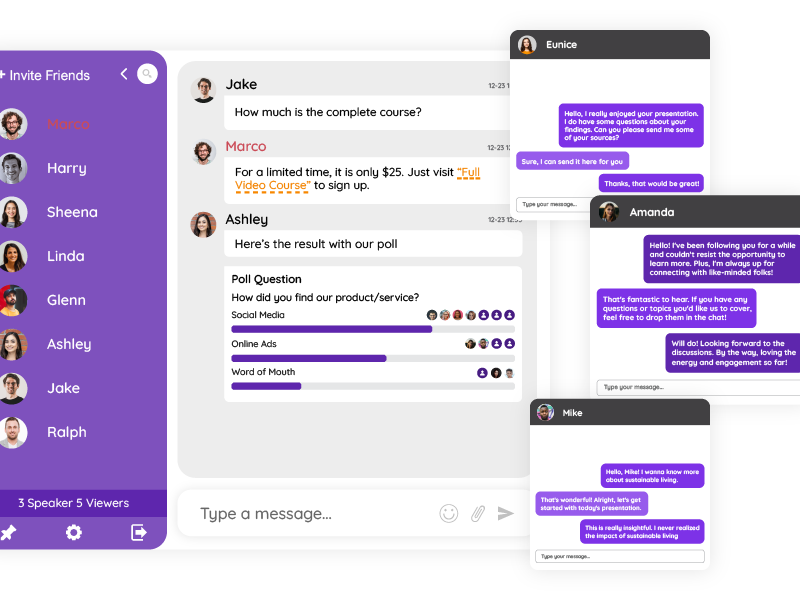 Too many messages can overwhelm an event chat. A structured Q&A feature helps speakers manage questions and answer them in order.