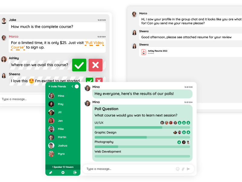 Regularly solicit feedback through polls or surveys to see where you can improve. For instance, if users consistently request a forum for asynchronous discussion, consider adding one alongside real-time chat.