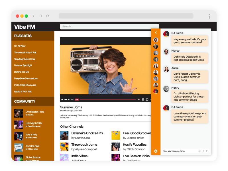 Moderators can delete messages, ban users, silence disruptive participants, and monitor activity in real time. This panel provides all the tools needed to maintain order without automated systems interfering.