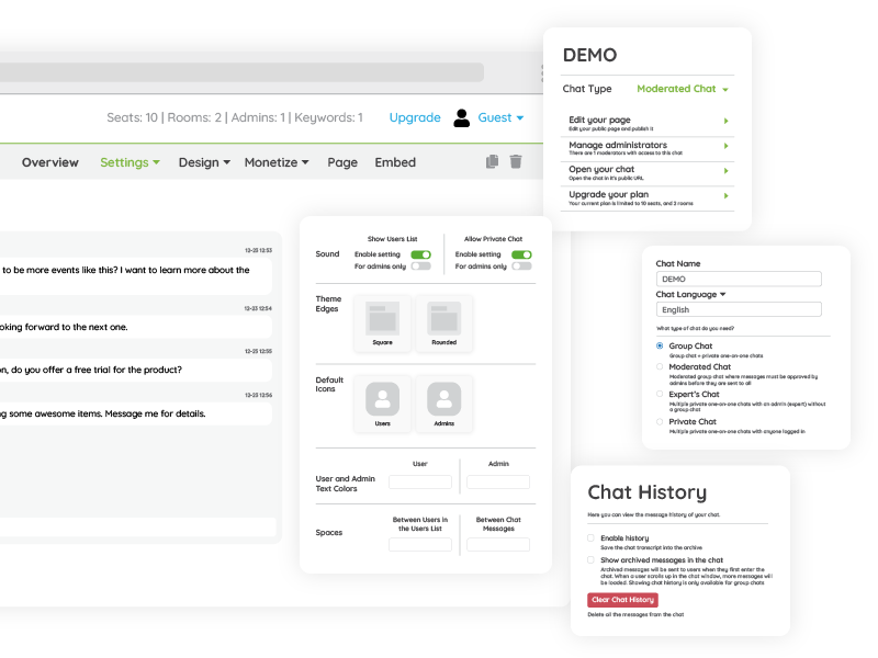 - Customize your chat room settings to match your branding and preferences.