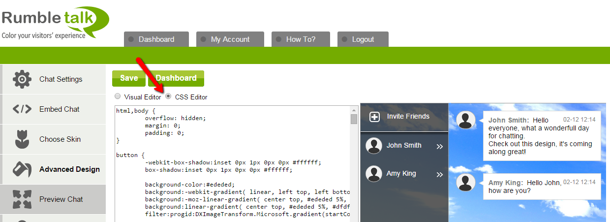 One more important point, web designers have the option now to design the chat room for customers with the exact look & feel of their website without compromising on the quality and look and feel. This made RumbleTalk very popular with web designers that expressed themself easily and were not forced to use a 3rd party chat software that has none or very limited customization options.