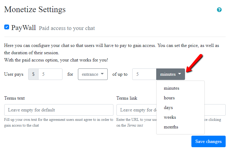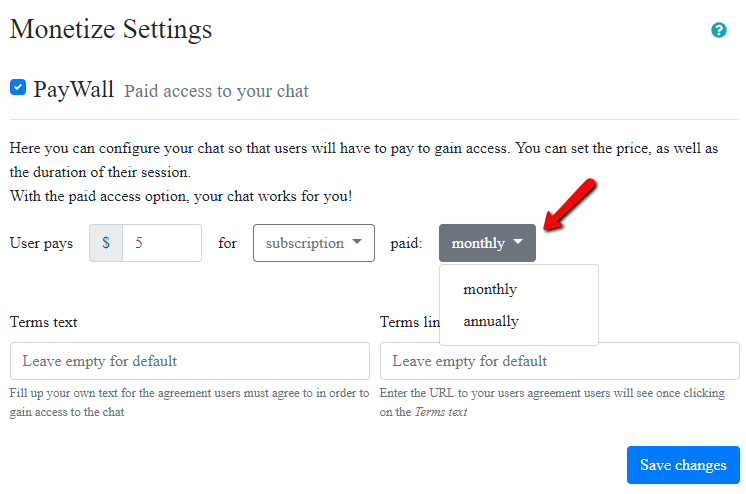 You can also opt to choose if you want a free chat or a PayWall chat, wherein users will pay to enter the chat. Just choose the paid option.