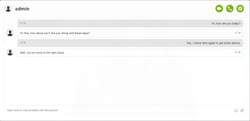 As a result, you will only see a private chat when an admin is online. As a user, you cannot initiate a conversation with an expert if he is not online. When he is online, only then can you talk to him.