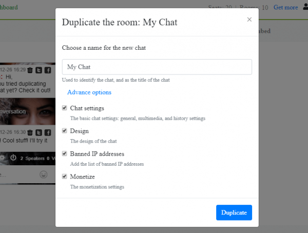 Ever wondered how you can copy your chat design? Now, you can duplicate a chat room with a click of a button.