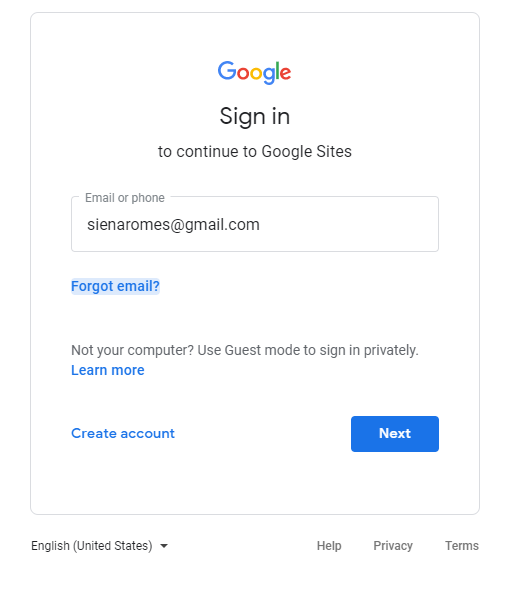 All you need to do is create your own Google Site first. First, you will need to sign up on Google before you can create your Google Site. To do that, just go to google.com and click “Sign In” in the top right corner. Instead of signing in, choose “Create account.” Type your email and your password. You now have your own Google account and you can now proceed with the next step.
